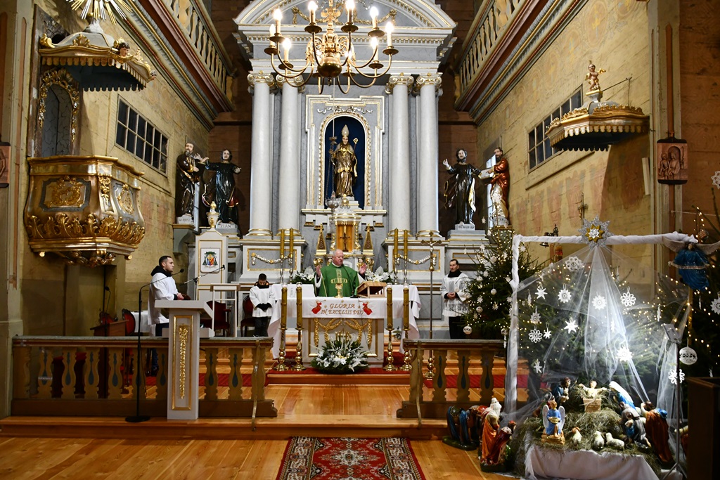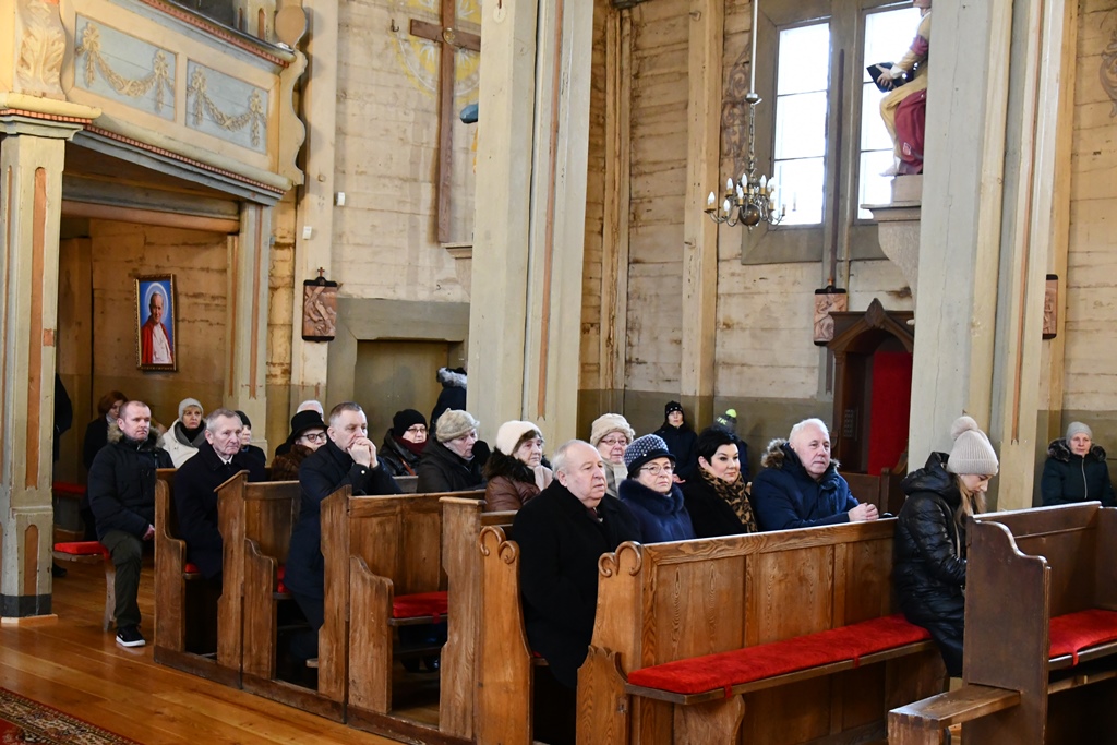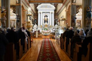 W niedzielę 14 stycznia 2024 r. bp Piotr Sawczuk odwiedził parafię w Narwi, by wziąć udział w dziękczynnej modlitwie podsumowującej kolejny etap prac remontowych narewskiej świątyni.