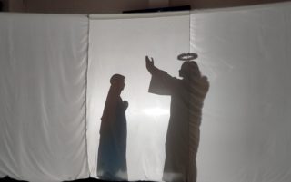 Tak również było w Zespole Szkolno – Przedszkolnym w Nurcu – Stacji. Wraz z uczniami klasy IV Szkoły Podstawowej przygotowania się Jasełek podjęła się katechetka s. Katarzyna Lachowska we współpracy z p. Jolantą Domoracką. W tym roku przedstawienie Bożonarodzeniowe miało nietypową formę. Był to Teatr Cieni. Nigdy do tej pory nie wykorzystywaliśmy jej w szkole. Ta forma ekspresji teatralnej – „gra światła i cienia” pozwala na zaangażowanie wszystkich dzieci, szczególnie tych, które mają problemy z zapamiętywaniem tekstów i ich recytacją oraz, które na co dzień moją obawy przed wystąpieniami publicznymi. Aktorzy zachowują swoją anonimowość, ponieważ od publiczności oddziela ich białe płótno i widoczne jedynie są ich cienie. Teatr cieni opiera się na opracowaniu i przedstawieniu ruchów i gestów do odpowiednich tekstów i muzyki.