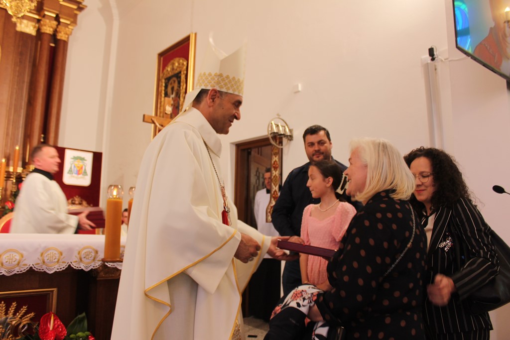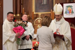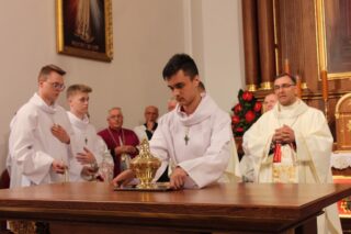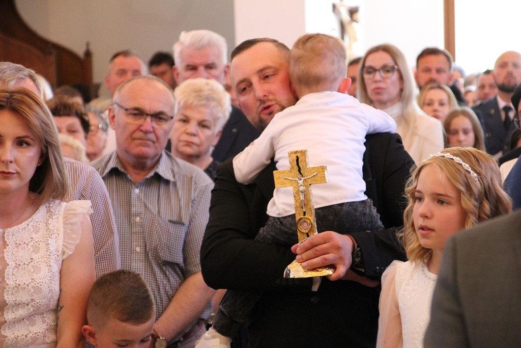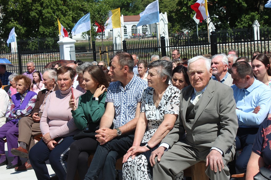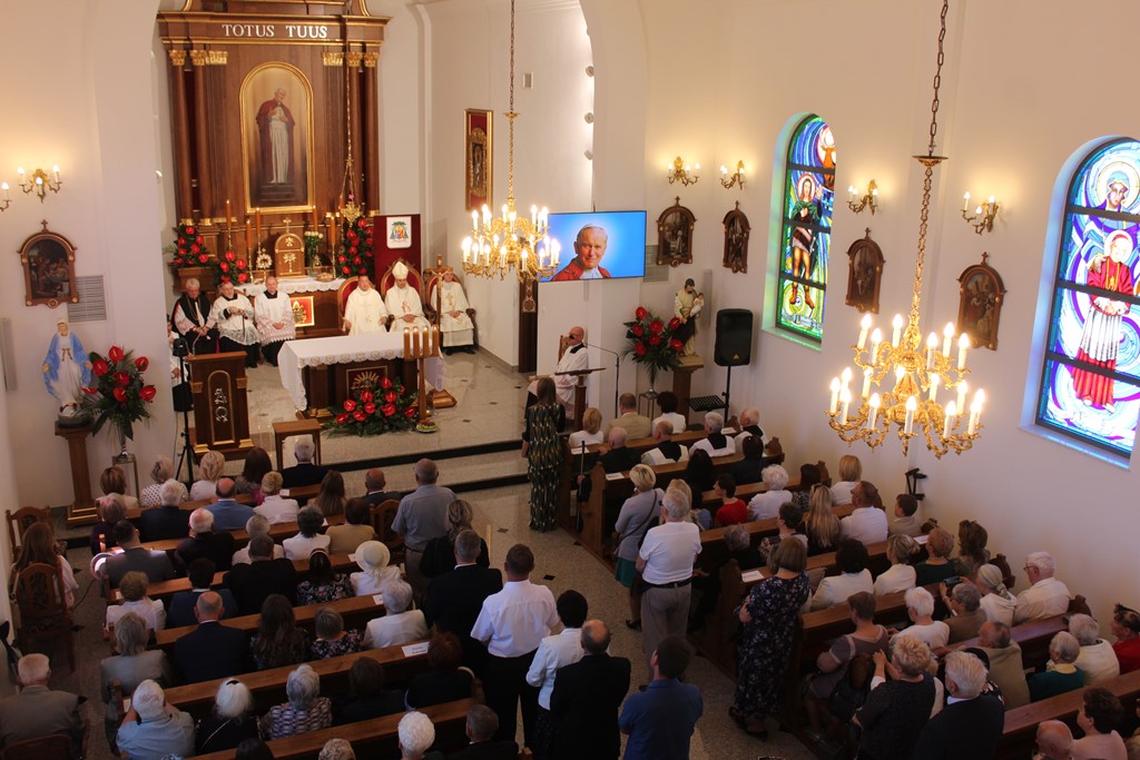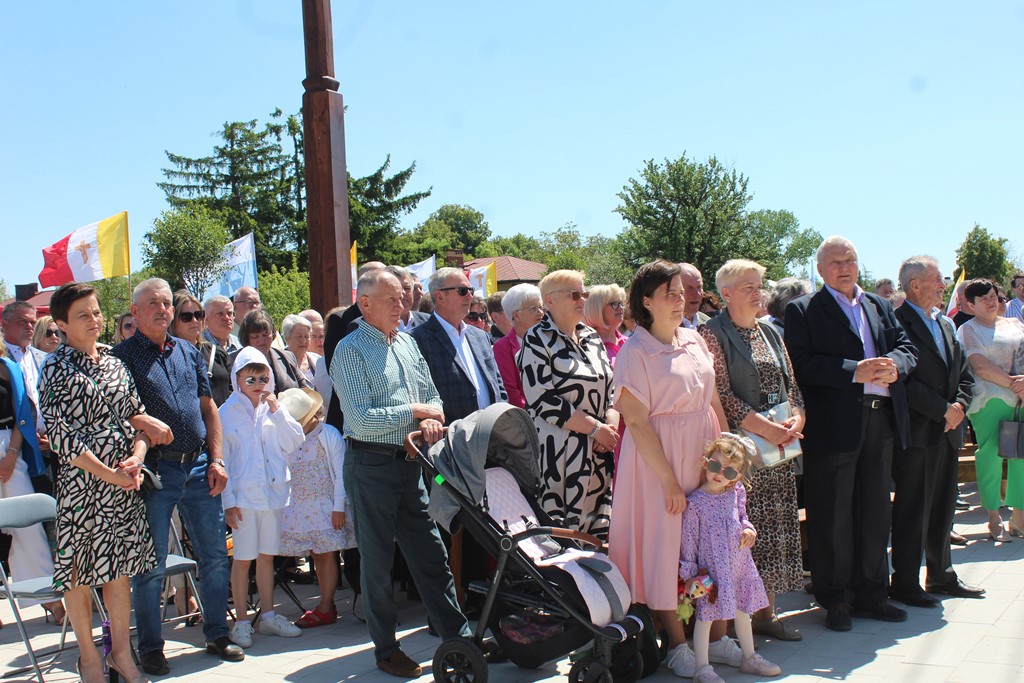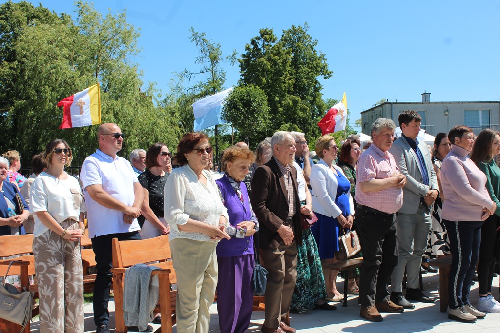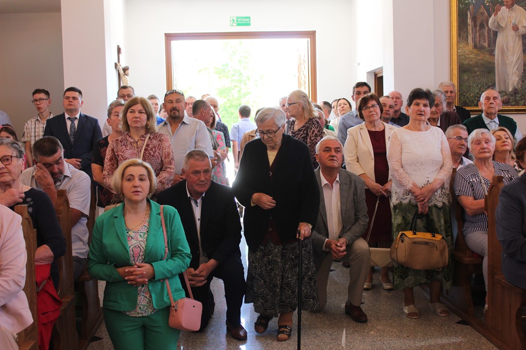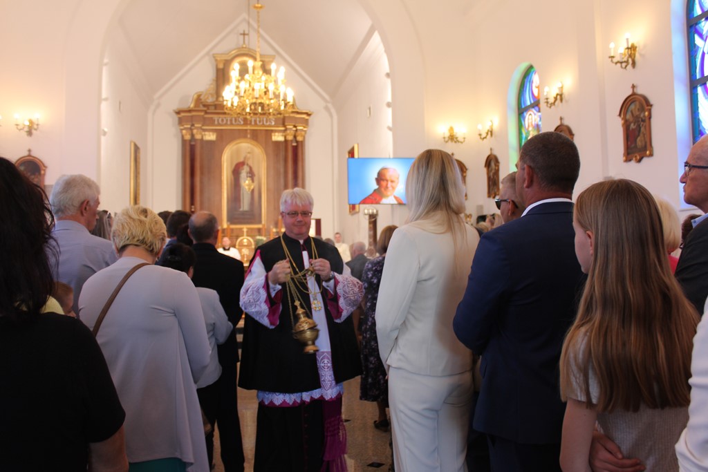 Ważnym momentem uroczystości było wniesienie do świątyni relikwii św. Jana Pawła II, co procesyjne uczyniła jedna z rodzin z parafii. Podczas Mszy Św. licznie obecna była służba liturgiczna. Parafianie włączali się w czytanie, nieśli dary. Eucharystię ubogacał Kameralny Chór KOE z Sokołowa Podlaskiego.
