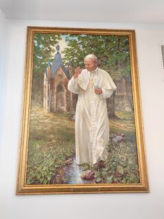 O patronie kaplicy mówi w dniu jej poświecenia wiele osób. Dzielą się wspomnieniami, osobistymi świadectwami wstawiennictwa i łask wypraszanych za pośrednictwem Ojca Świętego. Niektórzy z serdecznym uśmiechem przypominają, że kiedy 25 lat temu Jan Paweł II odwiedzał Drohiczyn, to jego śmigłowiec leciał nad parafią w Knychówku. Może wtedy pobłogosławił to miejsce – snują domysły.