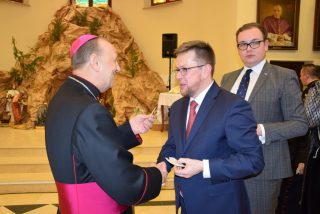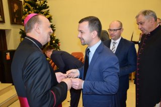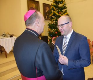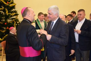 W imieniu wszystkich zgromadzonych samorządowców Artur Kosicki – Marszałek Województwa Podlaskiego podziękował Ekscelencjom za dotychczasową posługę, współpracę oraz życzył obfitości łask Bożych w Nowym Roku oraz tego, aby diecezja drohiczyńska nadal była miejscem, gdzie każdy może doświadczyć spotkania z żywym Bogiem oraz drugim człowiekiem. Posłucha życzeń Marszałek Województwa Podlaskiego: