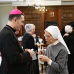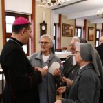 Przestawicie męskich i żeńskich zgromadzeń zakonnych pracujących na terenie diecezji drohiczyńskiej 20 grudnia 2025 r. przybyli do Drohiczyna, aby wraz z bp. Piotrem Sawczukiem uczestniczyć w przedświątecznym spotkaniu