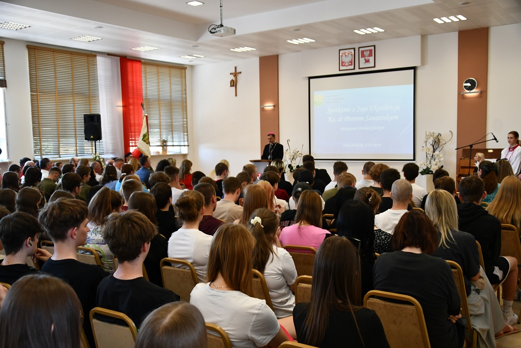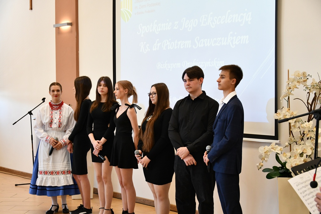 Kolejnym miejscem odwiedzin był Zespół Szkół nr 4 im. Ziemi Podlaskiej. Słowa powitania w imieniu całej społeczności szkolnej skierował dyrektor Bolesław Hryniewicki. O część artystyczną zadbał szkolny Zespół Pieśni i Tańca „Podlaskie Kukułki”, który zgromadzonych ubogacił swym śpiewem i tańcem. Również temu spotkaniu towarzyszyło słowo biskupa i pasterskie błogosławieństwo.